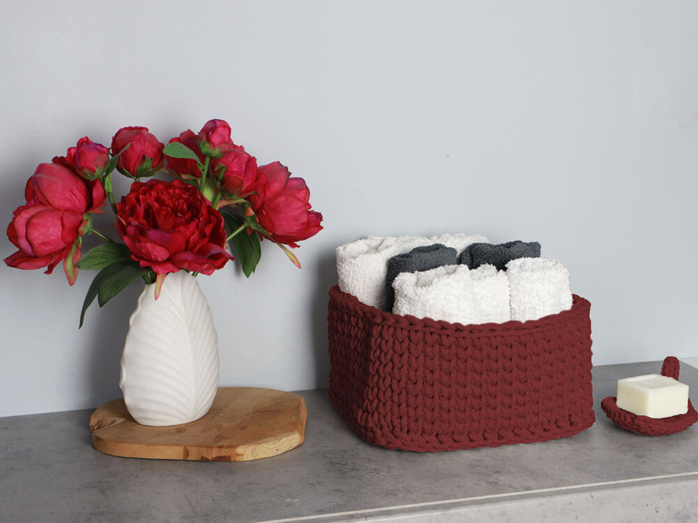 Bordowy, bawełniany kosz na wymiar