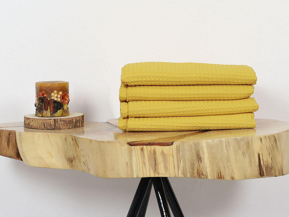 Bawełniany, ręcznik waflowy w kolorze musztardowym
