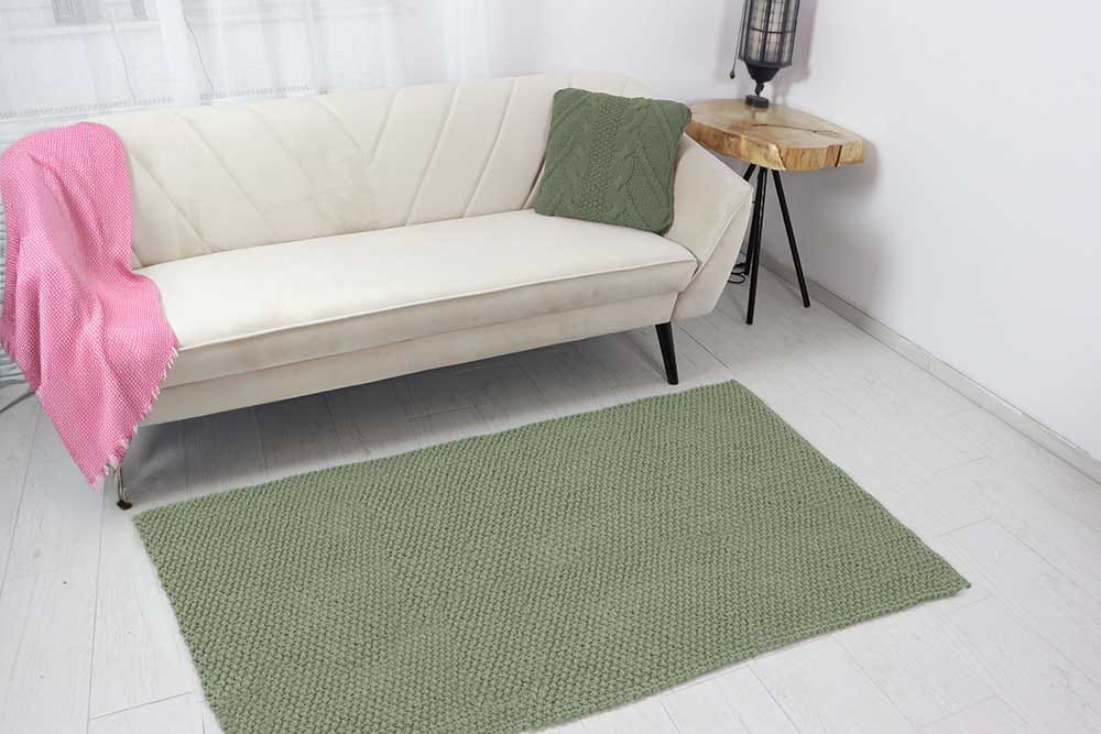 Bawełniany oliwkowy dywan. Wybór rozmiarów