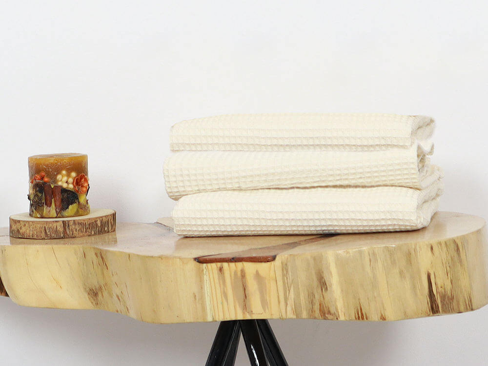Bawełniany ręcznik waflowy w naturalnym kolorze ecru