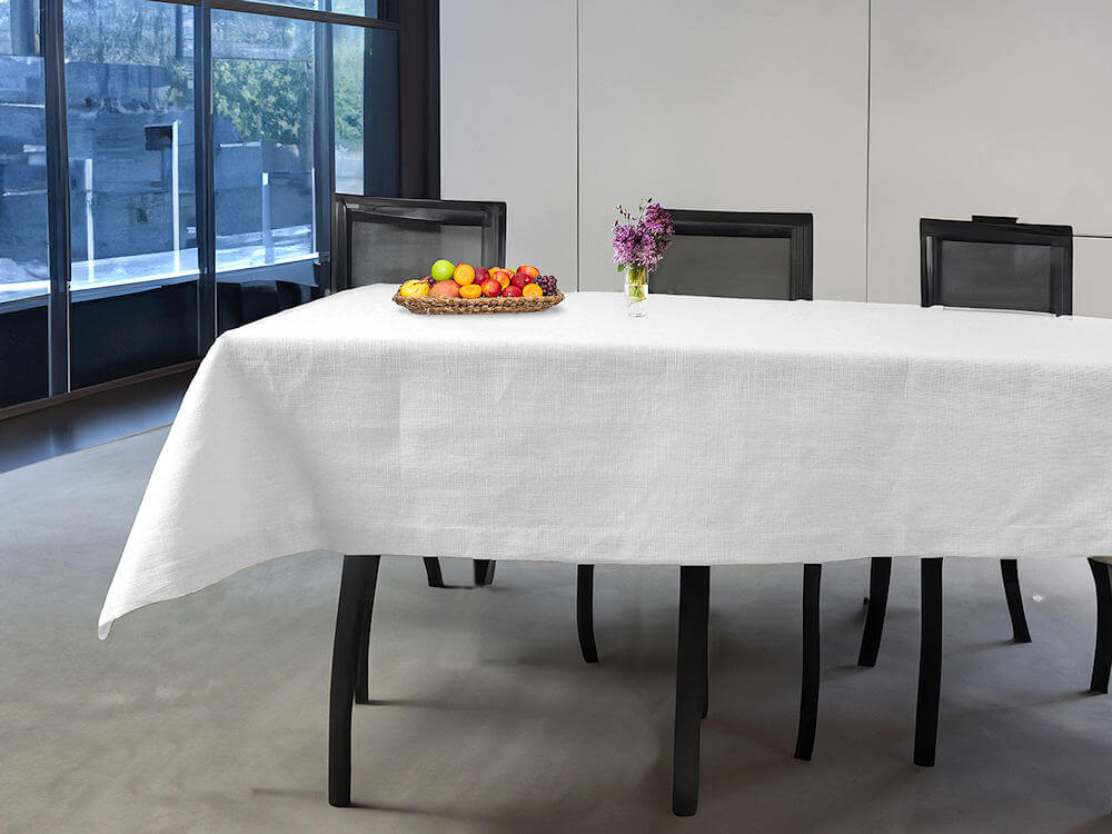 Postaw na naturalny minimalizm – zamów biały, lniany obrus i zobacz, jak zmieniają domowy klimat.