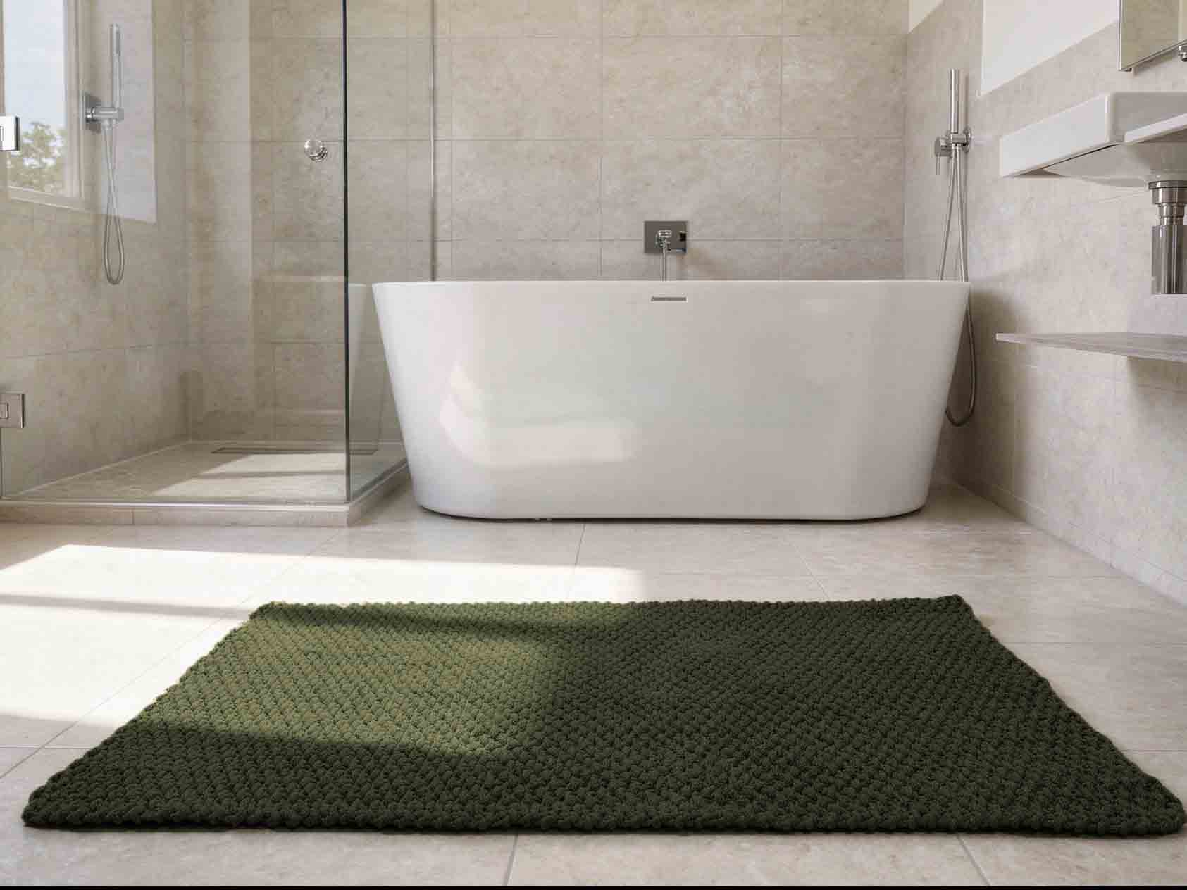 Stwórz swój własny komplet oliwkowych dywaników łazienkowych